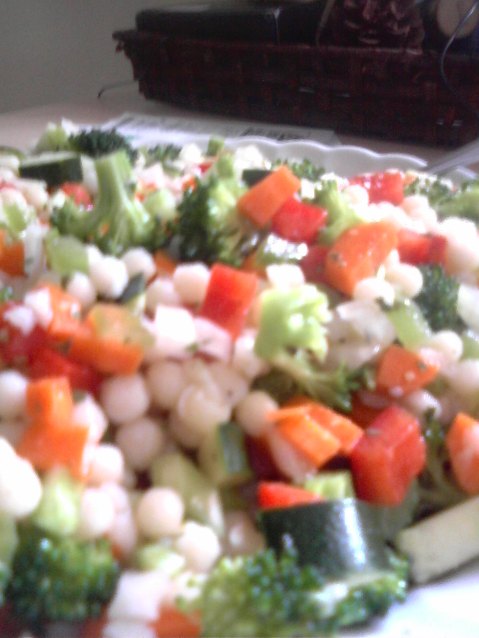 Yummy! Israeli Couscous salad. We have returned from a 2 week summer vacation. On the agenda this trip was a family reunion. I have know...